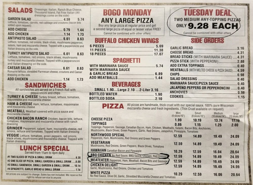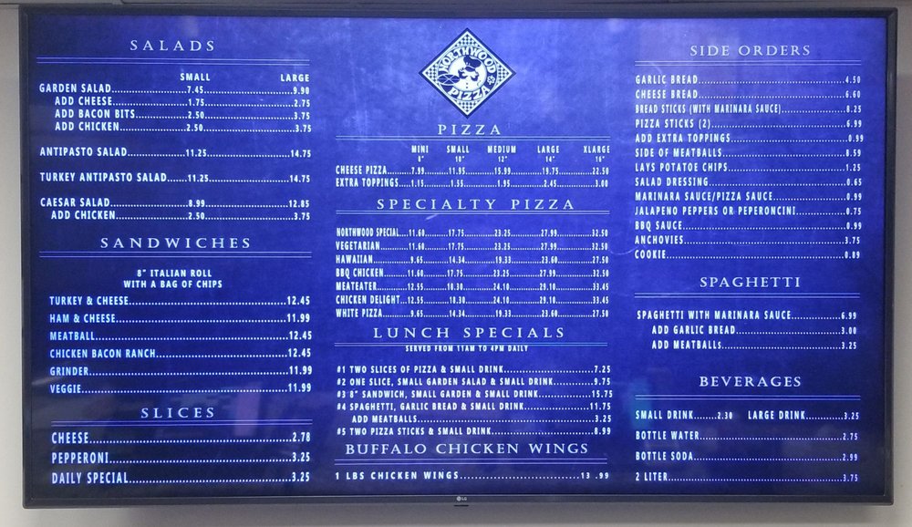 Northwood Pizza in Irvine, CA offers a diverse menu with options for everyone. From classic pizzas with toppings like pepperoni, sausage, and mushrooms to mouth-watering sandwiches like Turkey & Cheese and Roast Beef, there is something for every craving. The Antipasto Salad and Garden Salad are perfect for those looking for a lighter option, while those craving a hearty meal can opt for the Northwood Special pizza loaded with pepperoni, ham, mushrooms, red onions, and green peppers. Customers rave about the quality of the ingredients and the friendly service. Whether you're dining in, ordering delivery, or picking up a to-go order, Northwood Pizza is a solid choice for delicious and satisfying meals.